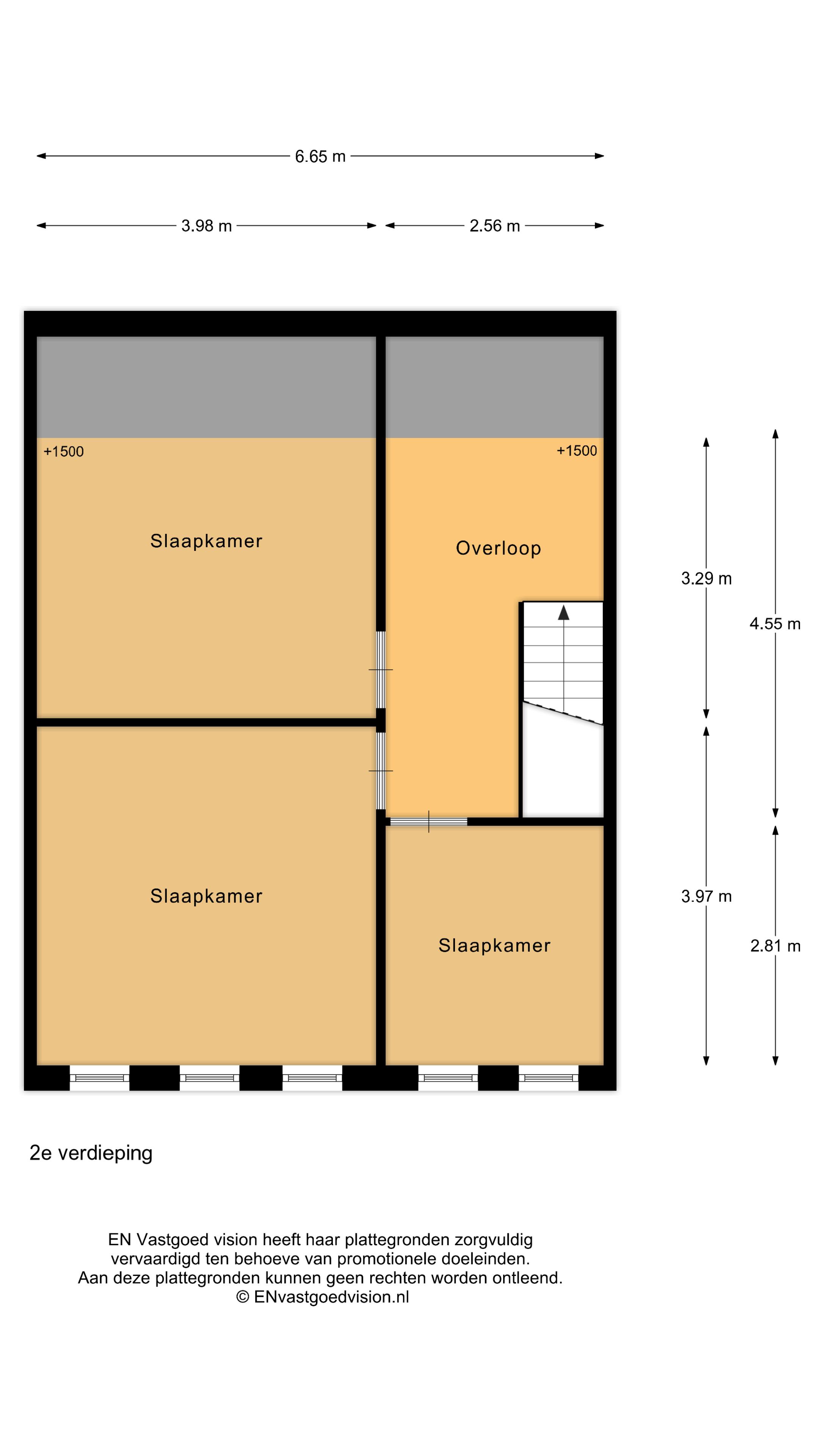De tweede verdieping bestaat uit drie slaapkamers. Verder is er nog een opbergzolder.